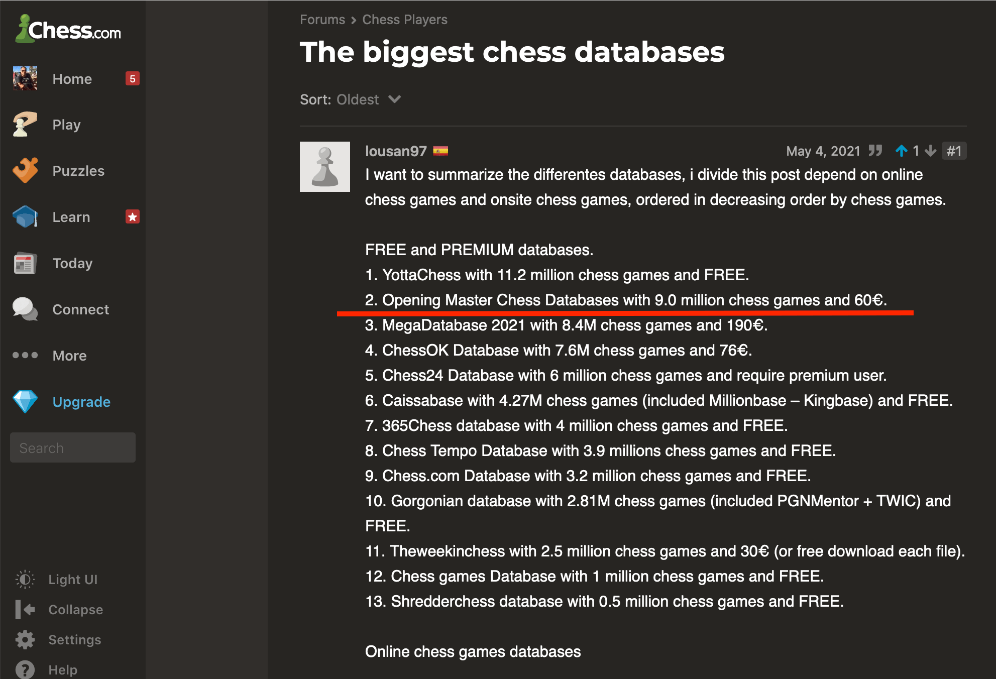 2. Opening Master Chess Databases with 9.0 million chess games and 60€.